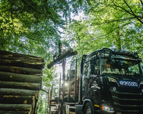 Wir liefern auch Stammholz und Großmengen an Brennholz in Containern!